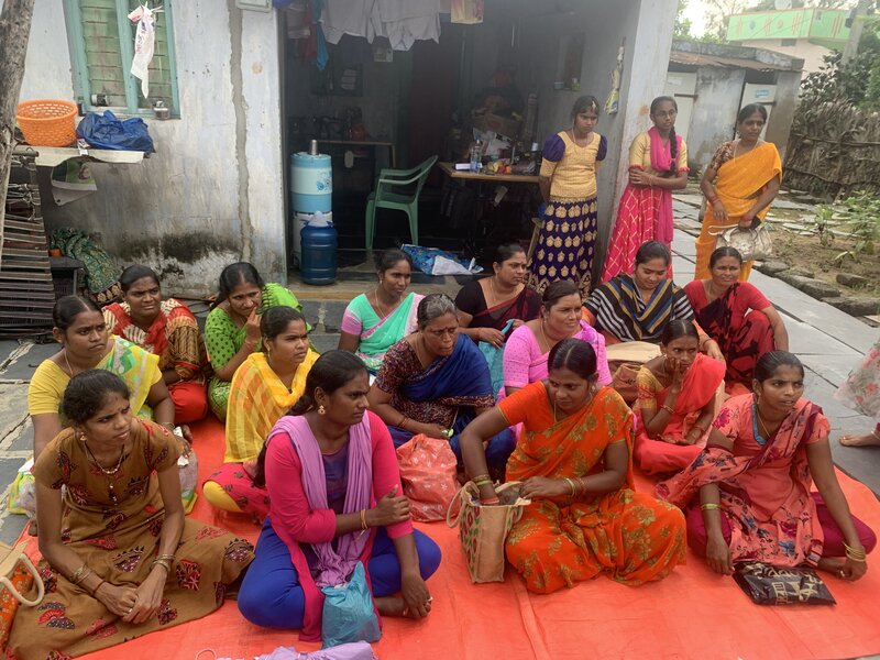 Teilnehmerinnen eines Stickerei-Kurses im indischen Dorf Tulur.