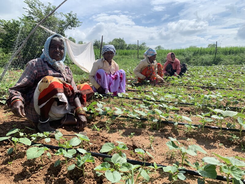 Kleinbäuerinnen beim gemeinsamen Anbau auf dem Feld.