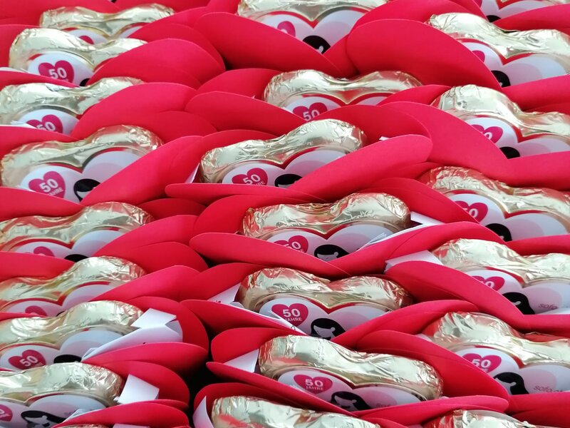 Über 80 Frauengemeinschaften beiteiligen sich mit Aktionen für den Solidaritätsfonds. Sie führen Jubiläums-Gottesdienste durch, verschenken den Teilnehmer:innen an Mitgliederversammlungen die Jubiläums-Fruchtgummi-Herzen und Schoggi-Herzen, führen eine Muttertagsaktion mit Herz durch oder gehen an einen Markt. Danke für das grosse Engagement!